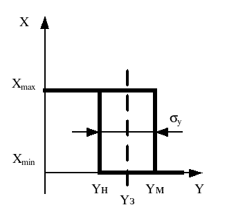На рисунке 8.2а изображена статическая характеристика идеального двухпозиционного регулятора, мгновенно меняющего свой выходной сигналX при достижении регулируемой величиной Y заданного значения Yз. Реальный регулятор обладает некоторой зоной нечувствительности y (рисунок 8.2б), в пределах которой изменение регулируемой величины Y не приводит к изменению регулирующего воздействия X. Другими словами, регулятору необходимо некоторое время для срабатывания, поэтому он начинает вступать в работу с запаздыванием.