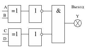 1) Используя представленные на стенде логические элементы, собрать предложенную преподавателем комбинационную логическую схему, например, как на рисунке 9.6.