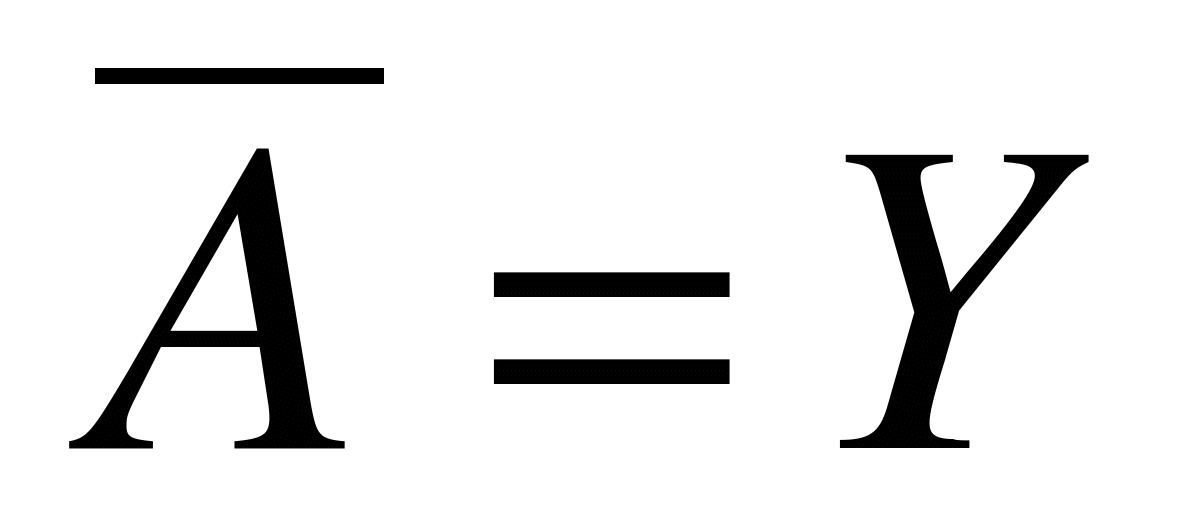 Условное обозначение логического элемента «НЕ» показано на рисунке 9.4 б. Возможные комбинации сигналов на входах и выходе логического элемента «НЕ» приведены в таблице на рисунке 9.4в. Булево выражение имеет вид: