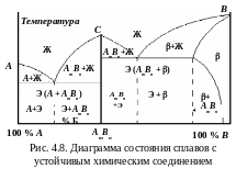 Диаграмма состояния сплавов с устойчивым химическим соединением компонентов (диаграмма IV типа)