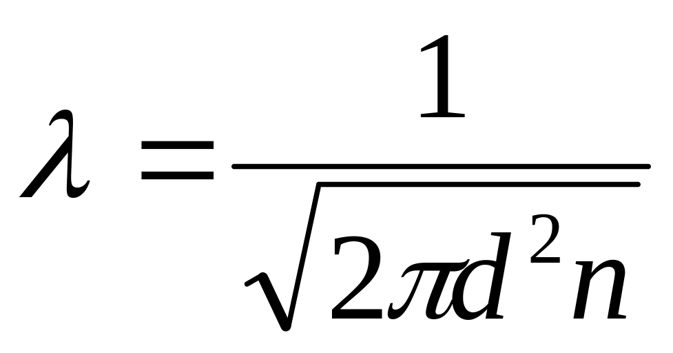 Согласно молекулярно-кинетической теории газов длину свободного пробега молекулы, равную среднему пути между столкновением ее с другими молекулами, вычисляют по уравнению: