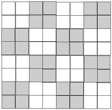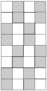 Вертикальный ряд клеток соответствует направлению нитей основы, горизонтальный - утка. Если в месте перекрещивания основная нить расположена над уточной (перекрывает), перекрытие называют основным и эту клетку закрашивают.