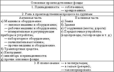 Основные фонды можно подразделить на активные и пассивные. К активным относят такие основные фонды, которые непосредственно участвуют в производстве продукции и оказывают непосредственное прямое влияние на объем выпускаемой продукции. К активным, как правило, относят машины и оборудование, транспортные средства и инструменты.