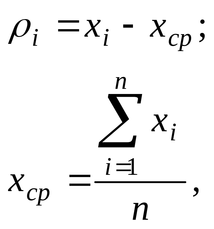 Здесь ρi – случайное отклонение i-го результата xi от среднеарифметического значения хср: