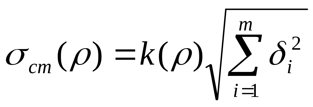 где k(ρ) – коэффициент, определяемый принятой доверительной вероятностью ρ и числом m составляющих систематической погрешности, δi – найденные нестатическими методами границы i-ой составляющей НСП (границы ее интервала). При ρ = 0,95 k(9) равен 1,1 при любых m.