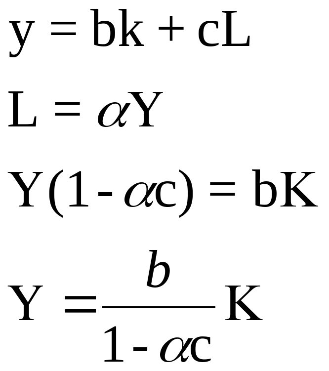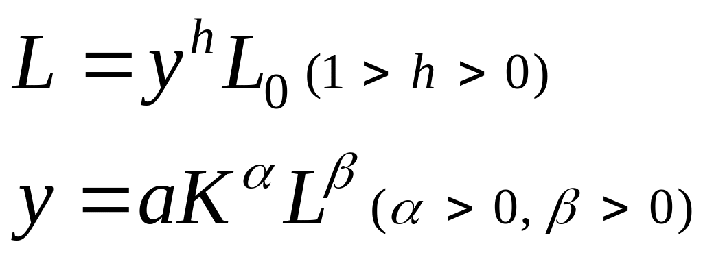 В свою очередь рост трудового фактора согласно производственной функции y= f(K,L) приводит к росту производства. В простейшем варианте модели используются формулы:
