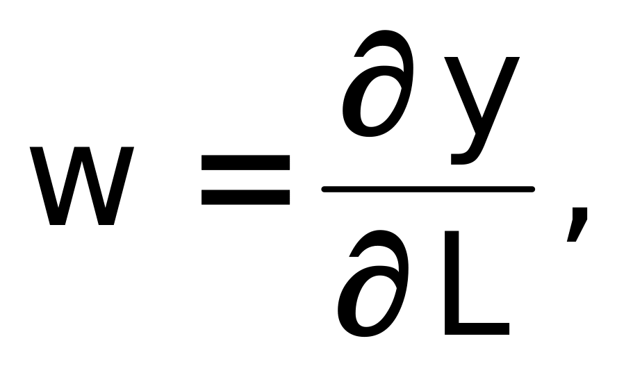 3) прогресс является нейтральным по Солоу, если сохраняется неизменным равенство между уровнем оплаты труда (w) и предельной производительностью труда и дальнейшее увеличение затрат труда невыгодно. Можно показать, что в этом случае ПФ имеет вид:
