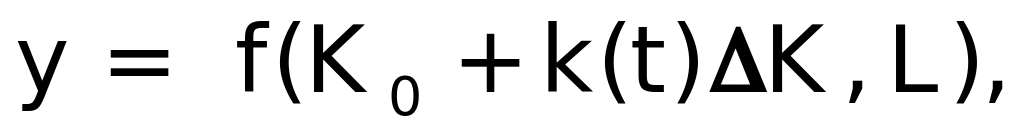 где возрастающая функция k(t) отражает изменение фондоотдачи;