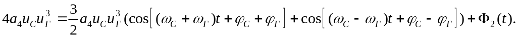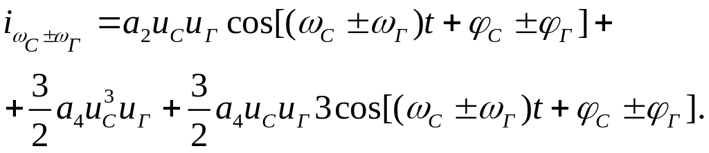 Для получения такой комбинационной частоты степенной полином, аппроксимирующий ВАХ, должен содержать член четвертой степени. Допустим, что ВАХ нелинейного элемента описывается полиномом четвертой степени: