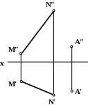 Провести горизонталь AB и фронталь AC, пересекающие прямую MN.