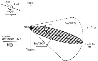 - •6.3. Графічне зображення зони хімічного зараження нхр.