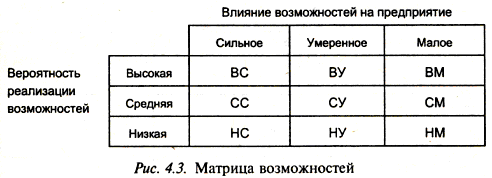 Для оценки возможностей применяется их позиционирование (матрица возможностей).