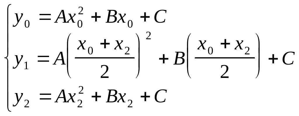 (причому значення коеф³ц³ºнт³в À, Â, Ñ нев³дом³). Якщо зам³нити площу кривол³н³йно¿ трапец³¿ на в³др³зку [x0;x2] площею кривол³н³йно¿ трапец³¿, обмежено¿ параболою (11), то можна записати