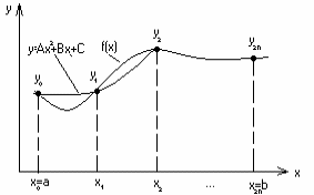 Íà â³äð³çêó [x0;x2] проведемо через три точки (x0,y0), (x1,y1), (x2,y2) параболу, якою зам³нимо п³д³нтегральну функц³ю f(x).