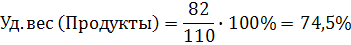 т/оф.(Продукты) = т/оф.(общий) – т/оф.(Напитки) = 110 – 28 = 82 млн. руб.