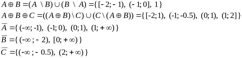 Симметрической разностью двух множеств A и B называется объединение двух разностей A \ B и B \ A, а абсолютным дополнением множества A называется множество всех элементов, не принадлежащих A, поэтому: