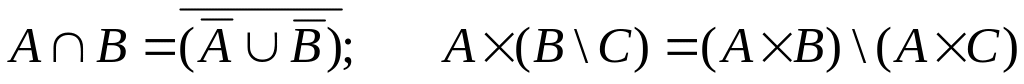 3. A \ (B C) = (A \ B) (A \ C); (A \ B) C = (A C) \ (B C)