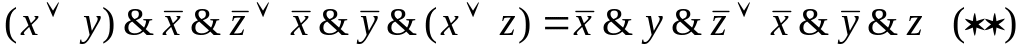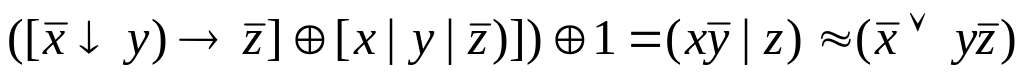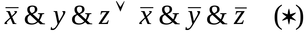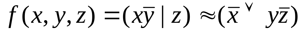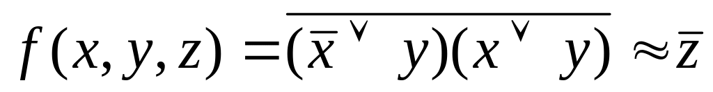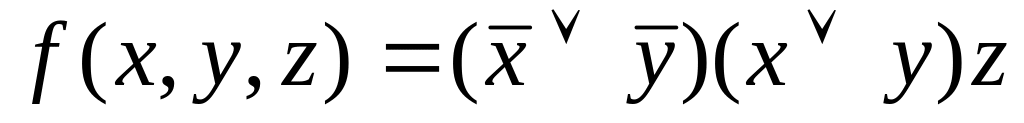 СПНФ(f(x,y,z))=(x1)(y1)(z1) (x1)y(z1) x(y1)z xy(z1)= (xyzxyxzxyzyz1) (xyzxyyzy) (xyzxz) (xyzxy) = xzzx1.