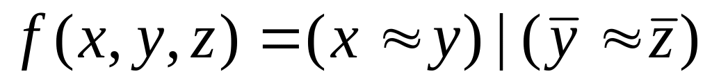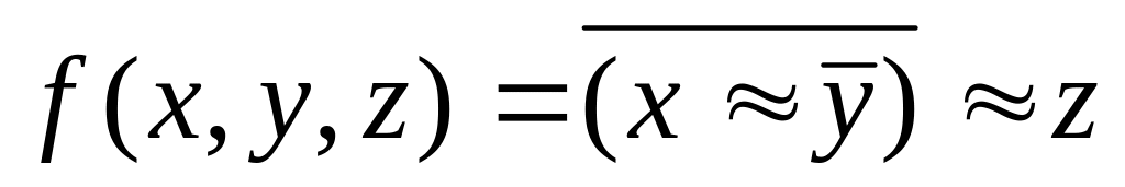 f(x, y, z) = ( 1, 0, 1, 0, 0, 1, 1, 0 )
