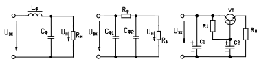 Коэффициент сглаживания многозвенных фильтров лежит в пределах 100-1000. Некоторые типы сглаживающих фильтров приведены на рис.6.