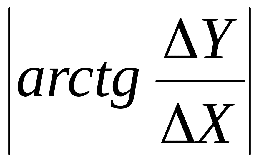 Вычисляем дирекционный угол α в зависимости от знака ΔХ и ΔУ