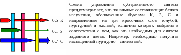 На рисунке голубого клина показана схема регулирования зональных составляющих белого излучения.