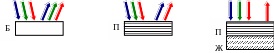 Красочный слой, регулирующий одно из основных излучений может использоваться либо на просвет, либо в отражённом свете, т.е. наложением на бумагу.