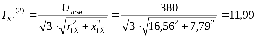 Ток трехфазного КЗ в точке К1 (расположенной на шинах НН ЦТП) равен:
