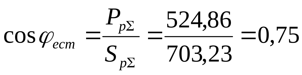 В случае достаточно больших величин реактивной мощности QрΣ, как в нашем случае, целесообразно частично скомпенсировать её в сетях ниже 1 кВ (до уровня, соответствующего =0,80). Для этого применим батареи статических конденсаторов, устанавливаемых на шинах 0,4 кВ цеховой ТП.