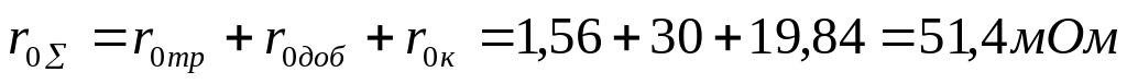 Суммарное активное сопротивление, кроме сопротивления цехового трансформатора должно учитывать переходные сопротивления контактов. Для этой цели в расчет вводим добавочное сопротивление, которое на шинах подстанции составляет 15 мОм: r1доб = 15(мОм)