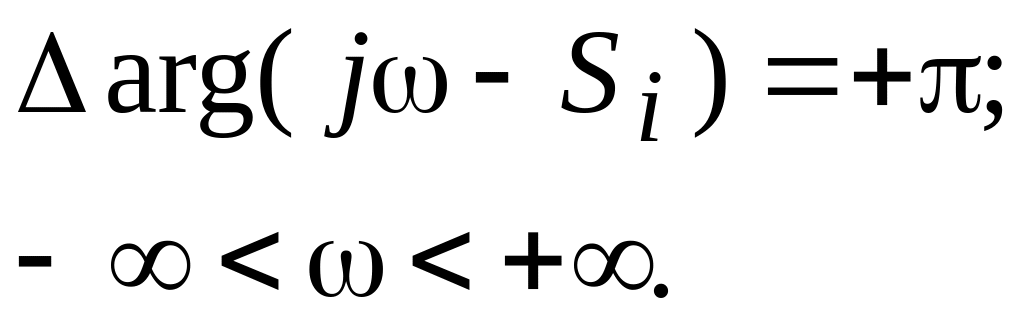 Согласно (2.14) для подсчета изменения аргумента надо подсчитать сумму изменений аргументов выражений вида . Это изменение аргумента зависит от того, в какой полуплоскости лежит корень . Рассмотрим эти два случая. Корень лежит в левой полуплоскости, как это показано на рис. 2.7 а.