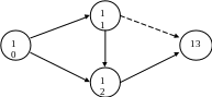 Зависимость одного события от другого, если работа не производится, показывается пунктирной стрелкой.