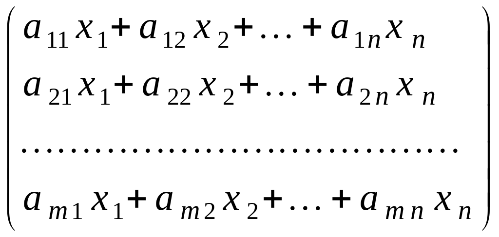 Умножим матрицу A на столбец неизвестныхx согласно правилу умножения матриц. Получим равенство