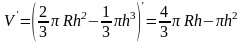 Мы видим, что объём конуса, вписанного в шар радиуса ,есть функция от высоты этого конуса . Найти высоту при которой вписанный конус имеет большой объём, это значит найти такое , при котором функция имеет максимум. Ищем максимум функции: