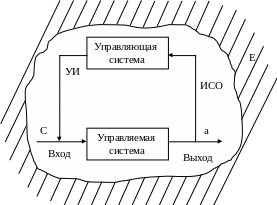 ИСО - канал передачи информации о состоянии объекта; С - воздействие окружающей среды на объект управления; а - выход объекта управления; Е - окружающая среда