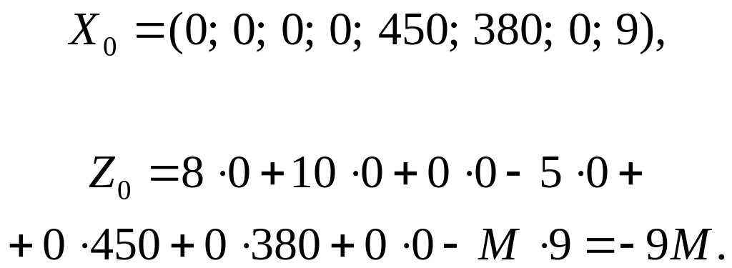 У результаті процедур симплексних перетворень виключалися з базису штучні змінні – їх вводять у цільову функцію з від’ємними коефіцієнтами: