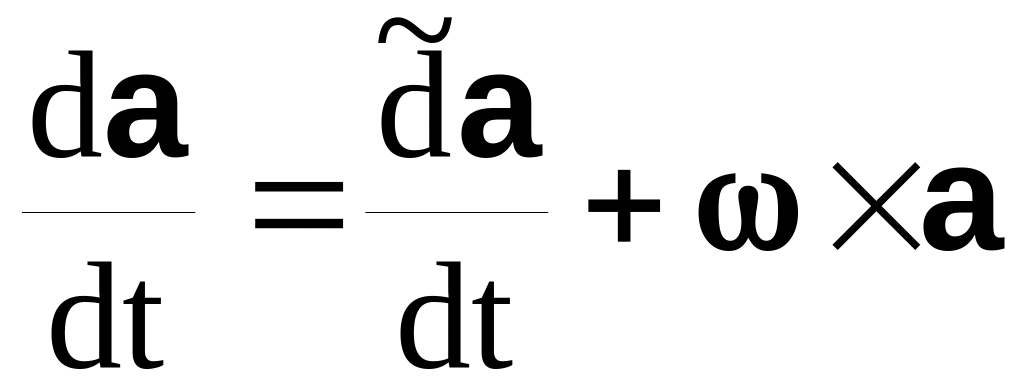Таким образом, абсолютная производная вектора равна сумме относительной производной этого вектора и векторного произведения угловой скорости подвижной системы координат на этот вектор.