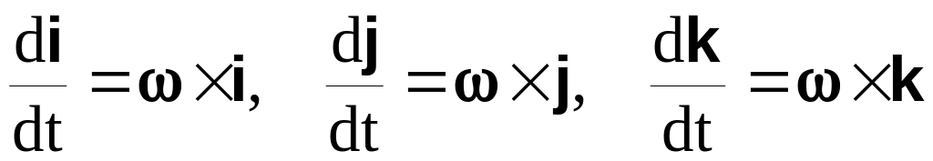 Дифференцируя обе части равенства (7.1) по времени, будем, иметь в виду, что векторы i, j и k вследствие движения подвижной системы координат меняют свое направление, т.е. являются функциями времени.