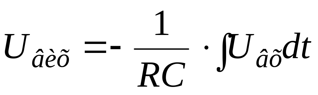 Інтегрування можна представити як визначення площі під кривою. Оскільки інтегратор на операційному виконує дію над напругами протягом періоду часу , то результат його роботи можна інтерпретувати як суму напруг за деякий час. Схема інтегратора на операційному підсилювачі наведена на рис.1.70.