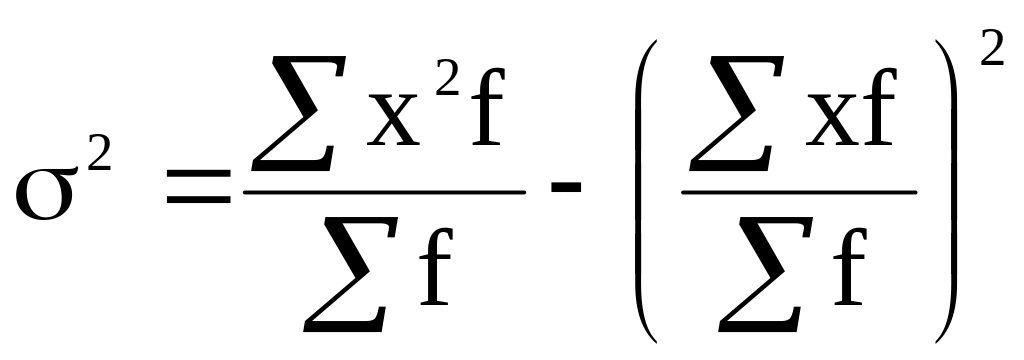 Применительно к сгруппированным данным, расчет дисперсии этим способом в развернутом виде представим в таком виде: