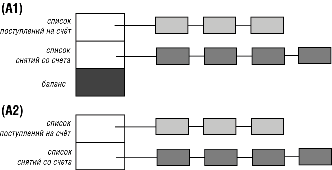 A1 Можно представить баланс банковского счета в виде одного из полей записи, описывающей каждый счет. При использовании такого подхода каждая банковская операция, изменяющая баланс, должна предусматривать корректировку соответствующего поля.