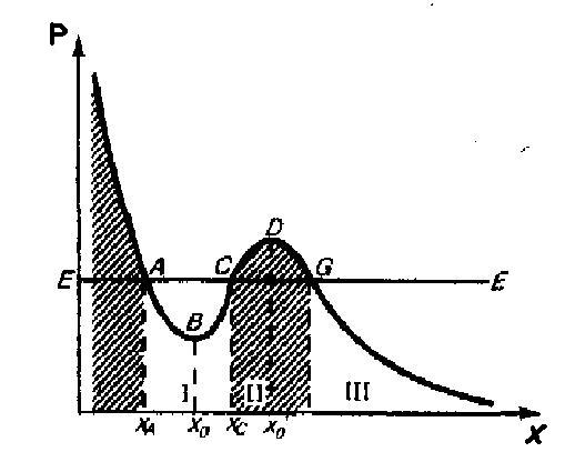 где P(х)≤Е, т. е. в областях I и III. Переходить