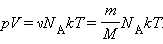 связывающее давление газа с его температурой и концентрацией молекул, получено в §3.2 для модели идеального газа, молекулы которого взаимодействуют между собой и со стенками сосуда только во время упругих столкновений. Это соотношение может быть записано в другой форме, устанавливающей связь между макроскопическими параметрами газа – объемом V, давлением p, температурой T и количеством вещества ν. Для этого нужно использовать равенства