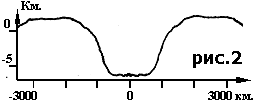На орбиту вокруг Марса был выведен космический аппарат “Глобал сервейор”. Он был снабжён лазерным высотомером со средней точностью измерений 13 метров, а на ровных поверхностях до 2 метров. С его помощью было выполнено около 30 миллионов измерений. На рис. 1 в виде двух половин глобуса схематически показана топографическая карта Марса, полученная в результате этой работы.