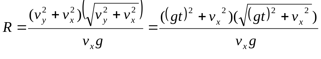 Задача 5. Камень брошен горизонтально со скоростью v x = 10 м/с . Найти радиус кривизны R траектории камня через время t=3с после начала движения.