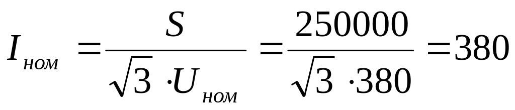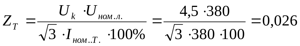 где Uк – напряжения короткого замыкания трансформатора, % (находят по мощности силового трансформатора см. приложение 2); Iном.т – номинальный ток трансформатора, А