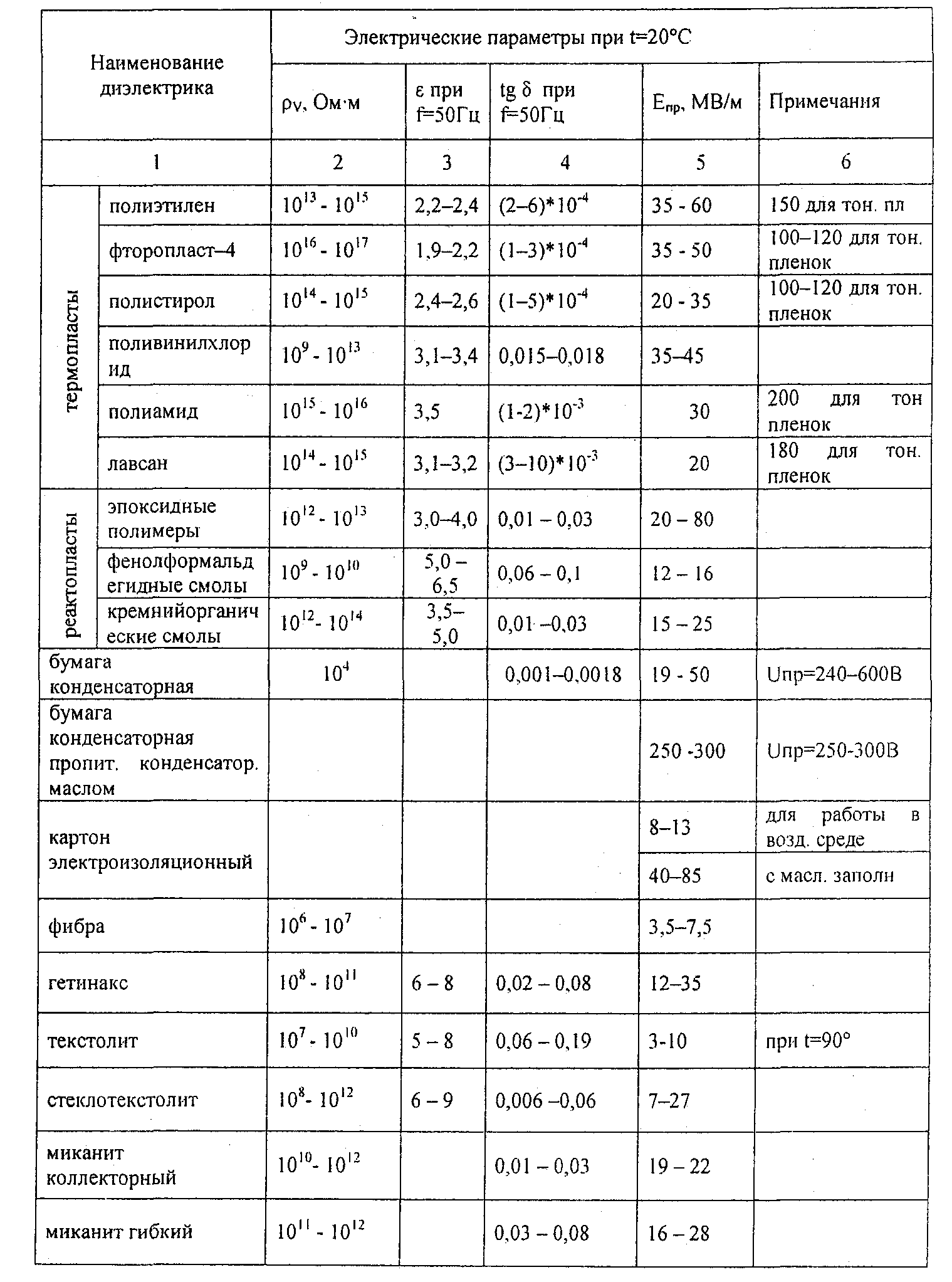 Таблица А.1 - Основные электрические свойства твердых диэлектриков