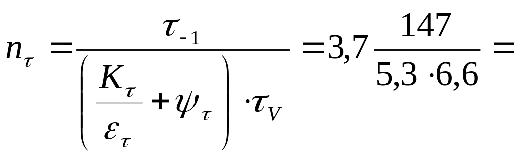 - Коэффициент запаса прочности по касательным напряжениям: