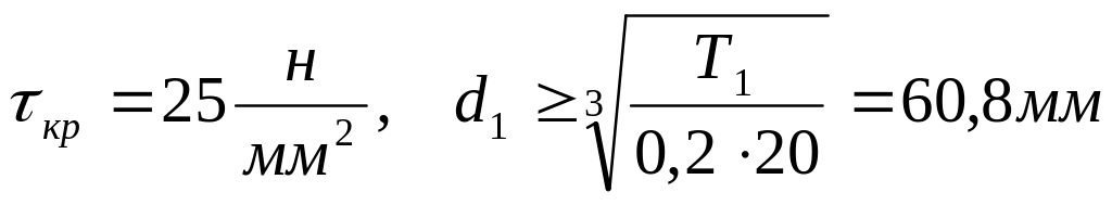 из расчёта на кручение, приняв допускаемое