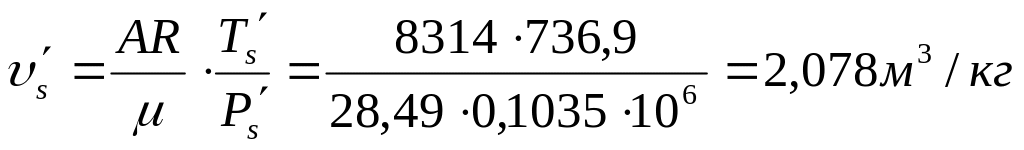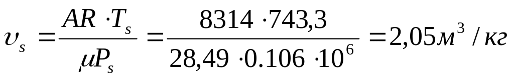 Удельный объем газа за диффузором при давлении Ps и температуре Тs (табл. 2):
